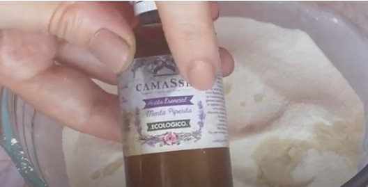 Añade los aceites esenciales y remueve bien con una cuchara o con las manos (usa guantes si tienes piel sensible).